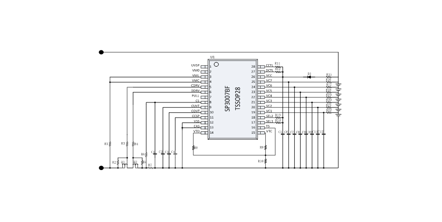 SP3007BF是一款用于6-7串鋰電池的保護芯片,SP3007BF 內(nèi)部集成了高精度的電壓、電流檢測電路,能夠?qū)崿F(xiàn)每串電池的過壓、欠壓保護,以及整串電池的充電過流、放電過流、短路保護和充放電的溫度保護等。SP3007BF 內(nèi)部集成 N型 MOSFET 的驅(qū)動電路,能夠直接驅(qū)動外部 N 型充電管和放電管,既可以兼容充放電分口應(yīng)用,也可以兼容充放電同口應(yīng)用。
